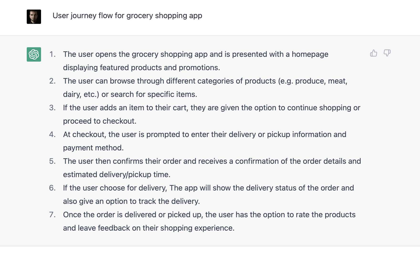If you need some inspiration or just need to verify if you predicted all steps in the user journey or the flow. Ask AI to prepare the list of steps. The results are very good.
